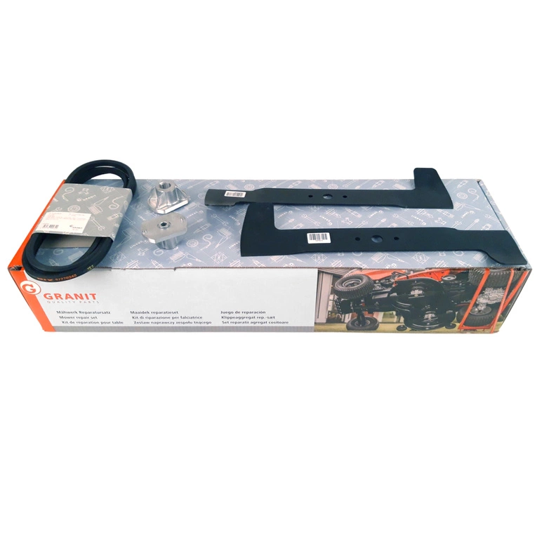 W zestawie: komplet noży (lewy + prawy), 2 szt. uchwytów noży, pasek klinowy podwójny noży