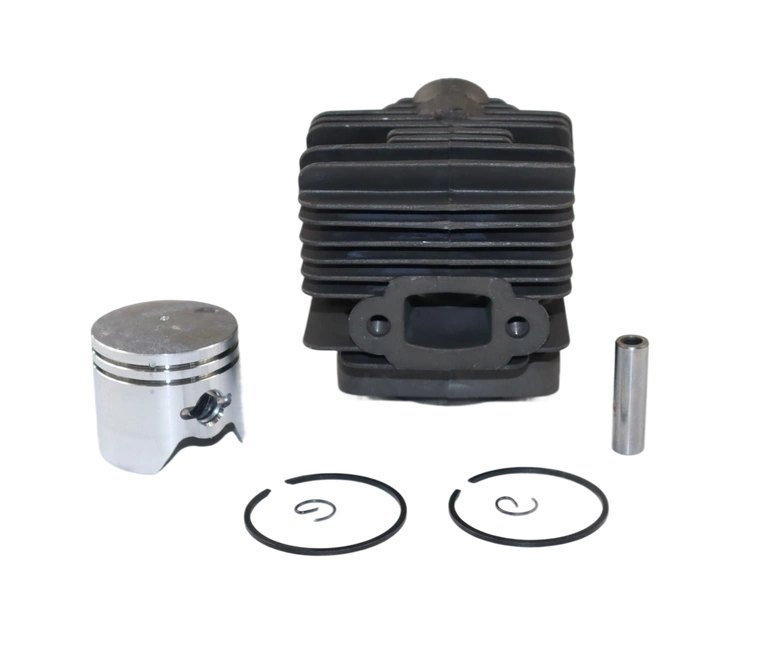 W zestawie cylinder, tłok, sworzeń, zabezpieczenia i pierścienie.