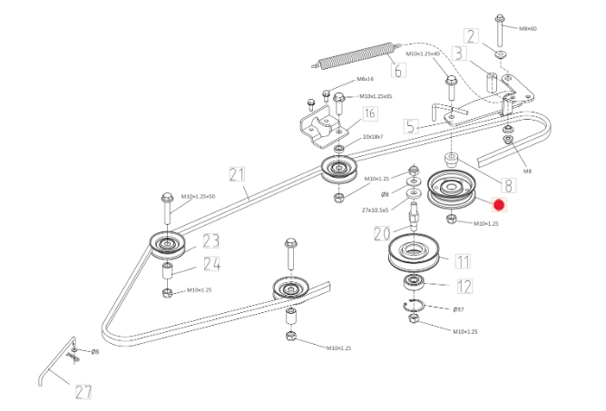 Koło pasowe napinacza jazdy traktorka Oleo-Mac - część oryginalna