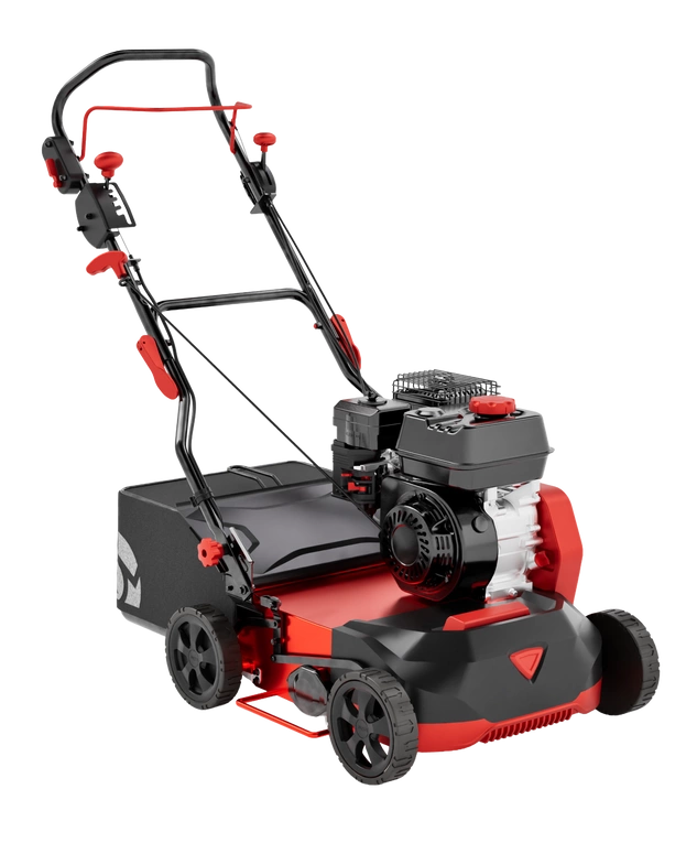 Centralna regulacja głębokości pozwala szybko dopasować intensywność pracy do stanu trawnika, a kosz 55 l zbiera wyczesane resztki, dzięki czemu po zabiegu powierzchnia pozostaje uporządkowana.