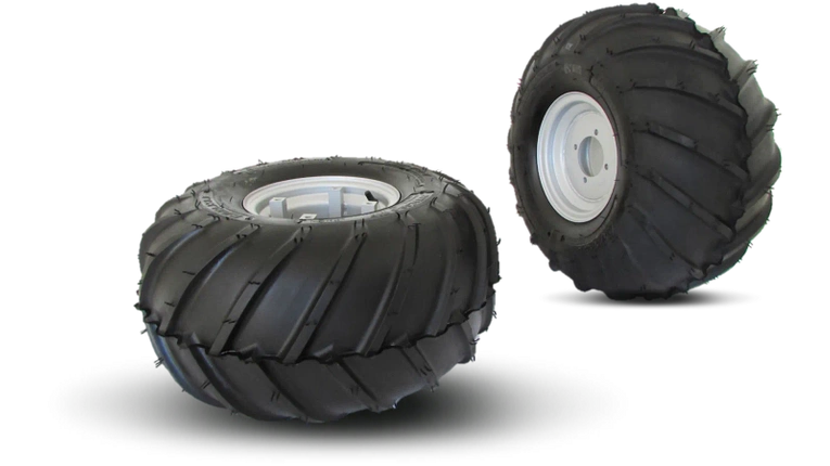 Zestaw kół szczególnie odpowiedni do stosowania podczas koszenia na terenach o znacznym nachyleniu. Poszerzony profil umożliwia rozłożenie obciążenia i przyczepności na znacznie szerszą powierzchnię styku z nawierzchnią.
