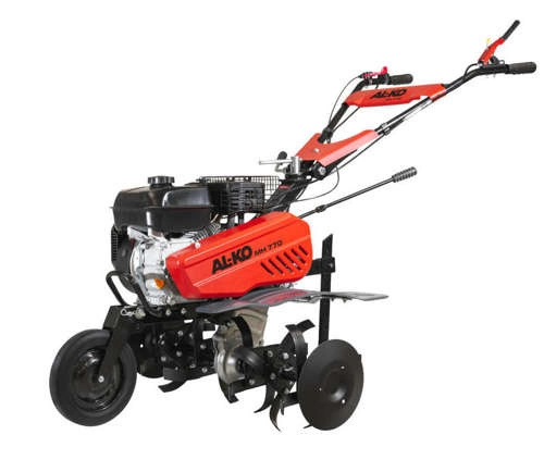 Glebogryzarka spalinowa AL-KO MH 770 z dwoma biegami przednimi oraz jednym tylnym pracuje na szerokości 77 cm. Wyposażona w silnik AL-KO o mocy 4,7 KM